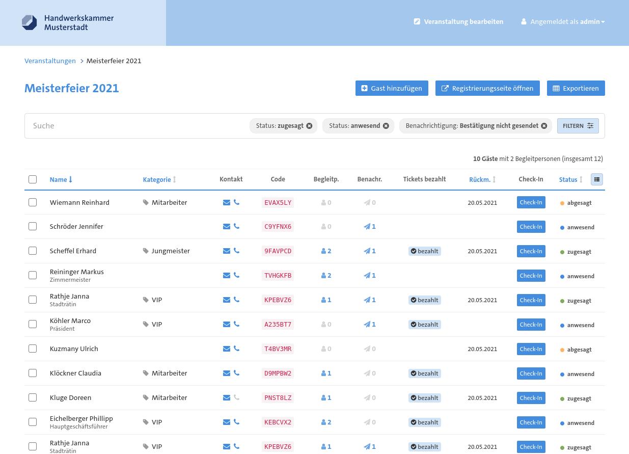 Die Handwerkskammern München, Stuttgart, Wiesbaden, Potsdam, Karlsruhe, Freiburg und Frankfurt an der Oder haben mittlerweile über 500 Veranstaltungen mit Invito geplant sowie über 70.000 Gäste registriert.